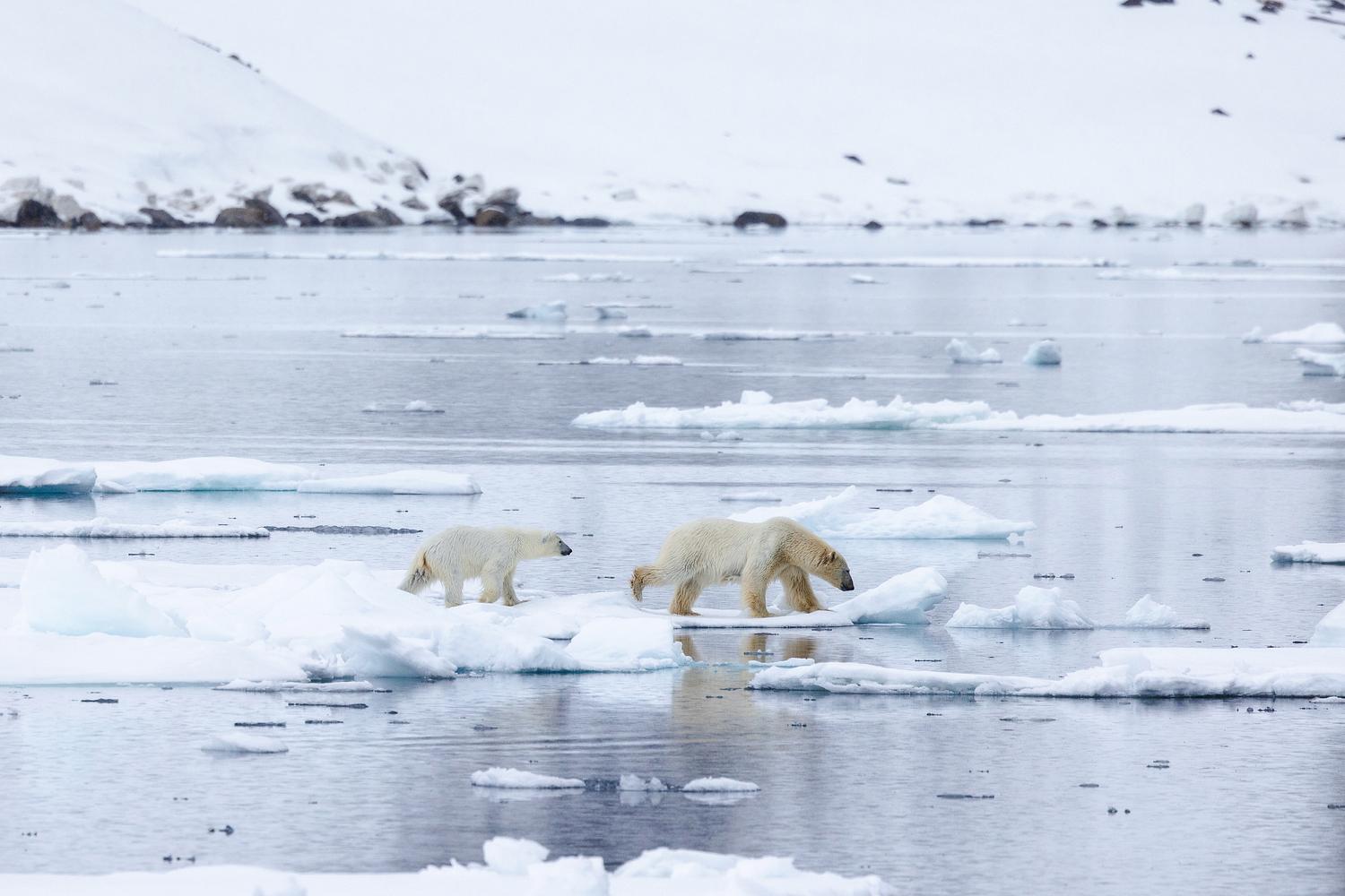 Mother & cub Polar Bear in Svalbard