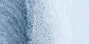 This aerial photograph captures the stunning textures of cracked ice blending into a frozen expanse in Iceland. The intricate details and cool tones create a mesmerizing natural abstract, perfect for lovers of minimalist and Arctic-inspired art